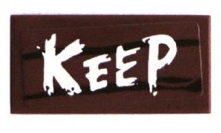 Tile 1 x 2 with White 'KEEP' on Wood Grain Background Pattern (Sticker) - Set 70800