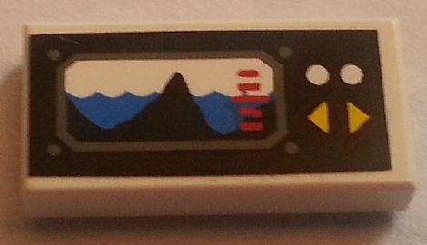 Tile 1 x 2 with Black Mountain Rising out of Blue Waves Display with White and Yellow Buttons Pattern (Sticker) - Set 8480