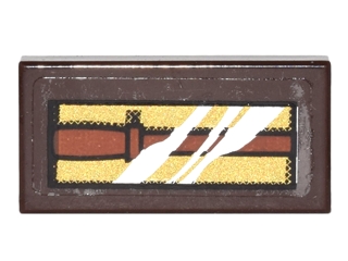 Tile 1 x 2 with Box with Reddish Brown Wand on Gold Background with Reflection Pattern (Sticker) - Set 10217