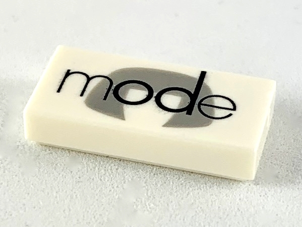 Tile 1 x 2 with Black 'mode' and Light Bluish Gray Wig Pattern