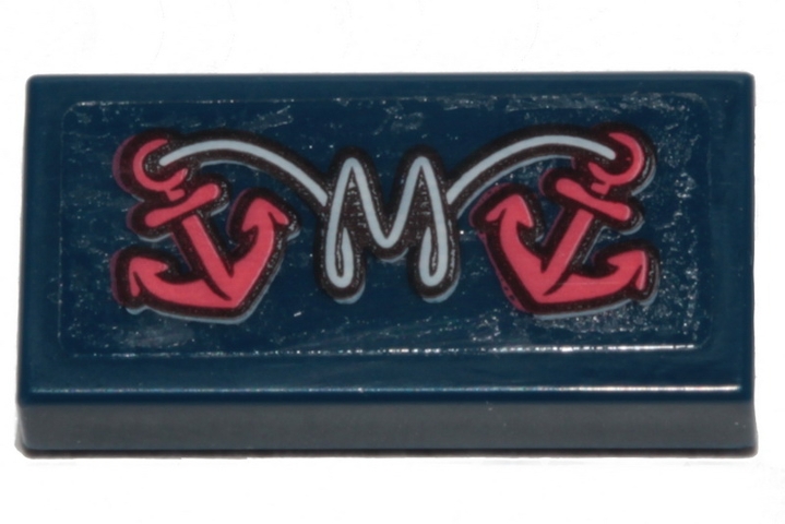 Tile 1 x 2 with White Rope and 2 Pink Anchors Pattern (Sticker) - Set 70419