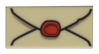 Tile 1 x 2 with Envelope with Red Wax Seal and Dark Tan Highlights Pattern
