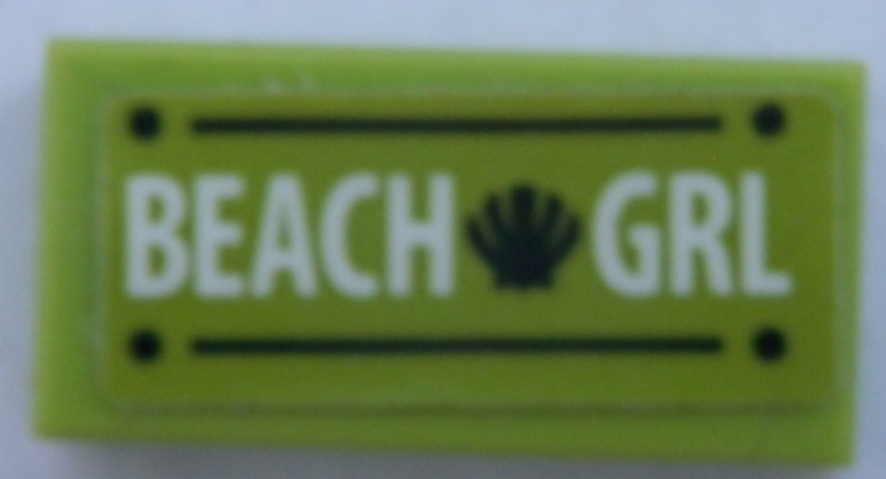 Tile 1 x 2 with White 'BEACH GRL', Black Shell, Lines, and Dots Pattern (Sticker) - Set 41316