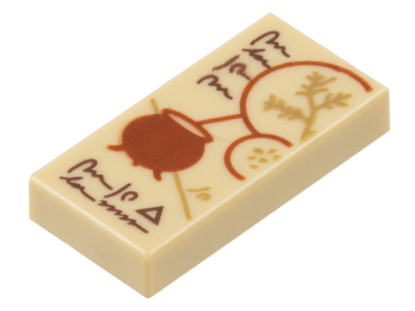 Tile 1 x 2 with Dark Brown Text, Dark Orange Cauldron, and Dark Tan Spell Ingredients Pattern