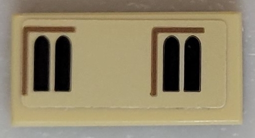 Tile 1 x 2 with Dark Brown Windows and Reddish Brown Lines Pattern (Sticker) - Set 71043