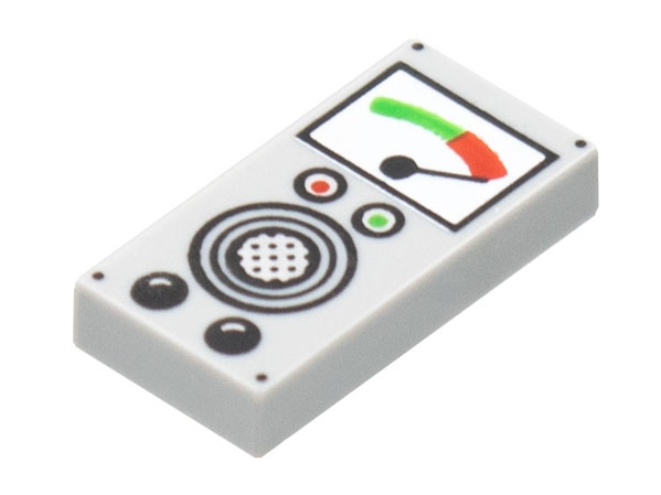 Tile 1 x 2 with Pegged Gauge, Red, Green, and Black Buttons, Speaker Pattern