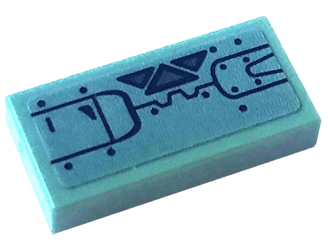 Tile 1 x 2 with Black Rivets, Lines, and Dark Bluish Gray Triangles Pattern Side A (Sticker) - Set 75571