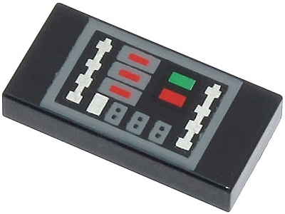 Tile 1 x 2 with Control Panel with Dark Bluish Gray Outline and Silver, Green, and Red Buttons Pattern (BrickHeadz Darth Vader Torso)