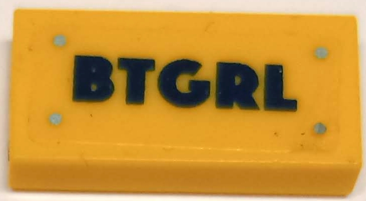 Tile 1 x 2 with Dark Blue 'BTGRL' and Silver Rivets Pattern (Sticker) - Set 41237
