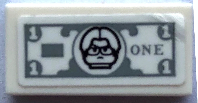 Tile 1 x 2 with Light Bluish Gray 1 Paper Bill with Minifigure Head (One Schrute Buck) Pattern (Sticker) - Set 21336