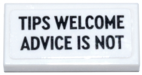 Tile 1 x 2 with Black 'TIPS WELCOME ADVICE IS NOT' Pattern (Sticker) - Set 910011