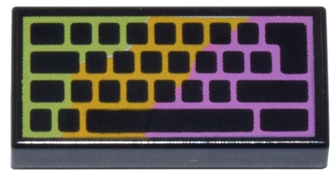 Tile 1 x 2 with Computer Keyboard, Dark Pink, Bright Light Orange, and Lime RGB Pattern