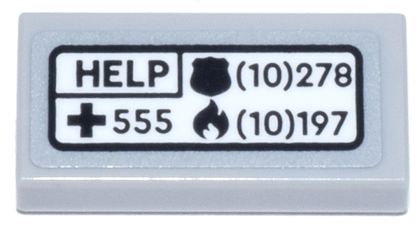 Tile 1 x 2 with White Sign with Black 'HELP' and Emergency Phone Numbers Pattern (Sticker) - Set 21347