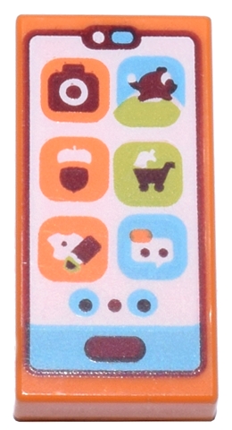 Tile 1 x 2 with Cell Phone / Smartphone with Medium Azure Bar and Buttons and Orange and Lime Icons Pattern (Animal Crossing NookPhone)