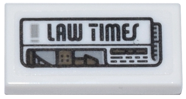 Tile 1 x 2 with Folded Newspaper with Black 'LAW TIMES', Dark Tan Skyline and Headline Pattern (Sticker) - Set 76218
