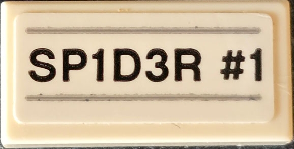 Tile 1 x 2 with Black 'SP1D3R #1' and Light Bluish Gray Lines Pattern (Sticker) - Set 76174