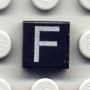 Tile 1 x 1 with Silver Capital Letter F Pattern