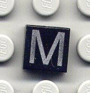 Tile 1 x 1 with Silver Capital Letter M Pattern