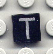 Tile 1 x 1 with Silver Capital Letter T Pattern