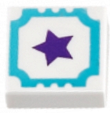Tile 1 x 1 with Medium Azure Outline and Dark Purple Star Pattern