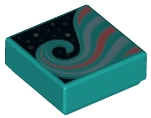 Tile 1 x 1 with Metallic Light Blue and Coral Swirl on Black Background Pattern