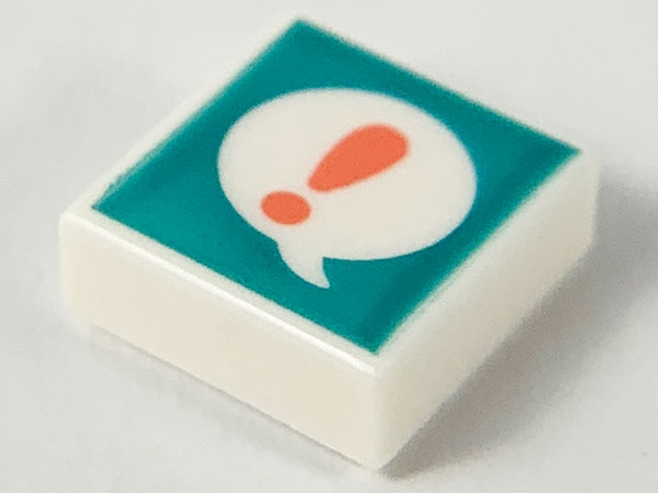 Tile 1 x 1 with Coral Exclamation Mark in Speech Bubble on Dark Turquoise Background Pattern