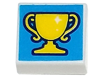 Tile 1 x 1 with Yellow Trophy on Dark Azure Background Pattern