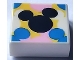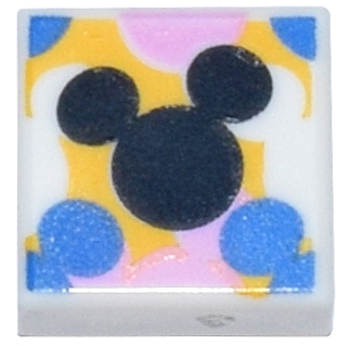 Tile 1 x 1 with Black, Blue, and Bright Pink Mickey Mouse Head Silhouettes on Yellow Background Pattern