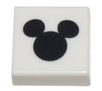Tile 1 x 1 with Black Mickey Mouse Head Silhouette Pattern