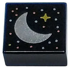 Tile 1 x 1 with Silver Crescent Moon, Gold Sparkle, and Metallic Light Blue and Metallic Pink Dots Pattern