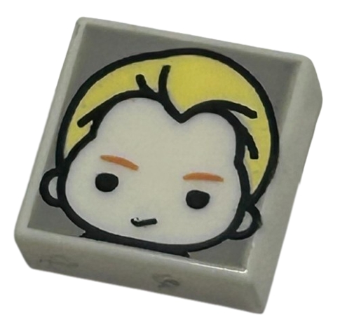 Tile 1 x 1 with Male Head with Smirk, Medium Nougat Eyebrows, and Bright Light Yellow Hair on Light Bluish Gray Background Pattern (HP Draco Malfoy)