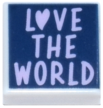 Tile 1 x 1 with Lavender 'LOVE THE WORLD' with Heart on Dark Blue Background Pattern
