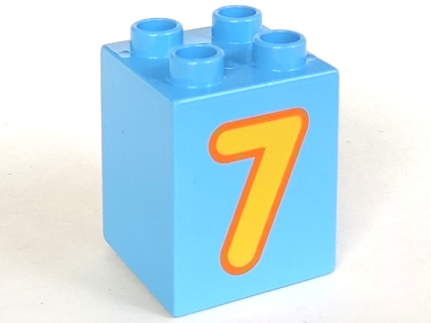 Duplo, Brick 2 x 2 x 2 with Yellow Number 7 with Orange Outline Pattern