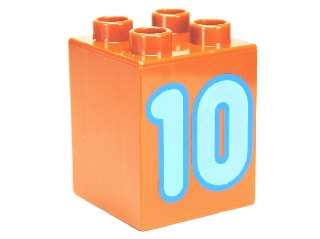 Duplo, Brick 2 x 2 x 2 with Number 10 Medium Blue Pattern