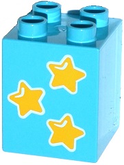 Duplo, Brick 2 x 2 x 2 with 3 Yellow Stars Pattern