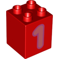 Duplo, Brick 2 x 2 x 2 with Coral Number 1 with Medium Lavender Outline Pattern