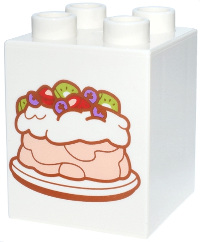 Duplo, Brick 2 x 2 x 2 with Light Nougat Desert Cake, Icing and Red Strawberries, Lime Kiwi Fruit, and Medium Lavender Blueberries Pattern