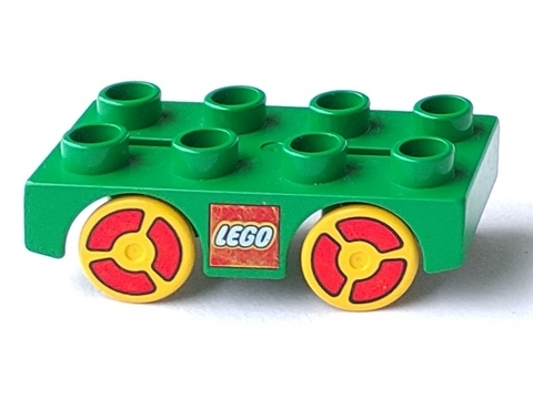 Duplo Car Base 2 x 4 with Yellow Wheels with LEGO Logo and Red on Wheels Pattern