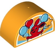 Duplo, Brick 2 x 4 x 2 Slope Curved Double with Red Rabbit and Four Balloons Pattern
