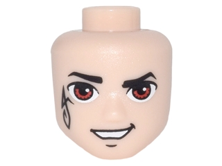Mini Doll, Head Friends Male Large with Thin Black Eyebrows, Red Eyes, Back Elves Tattoo and Open Mouth Smirk Pattern