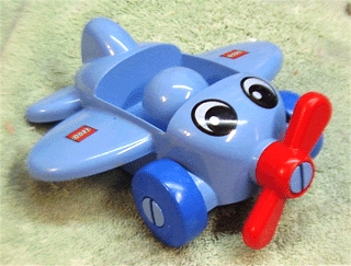 Primo Vehicle Airplane with Red Propeller and Blue Wheels with Eyes and LEGO Logo on Wings Pattern