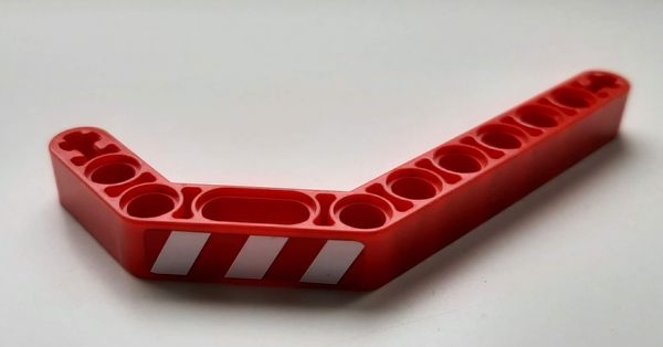 Technic, Liftarm, Modified Bent Thick 1 x 11.5 Double with Red and White Danger Stripes Pattern Model Left Side (Sticker) - Set 8294