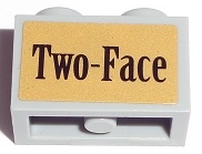 Technic, Brick 1 x 2 with Axle Hole with Black 'Two-Face' on Gold Background Pattern (Sticker) - Set 7785