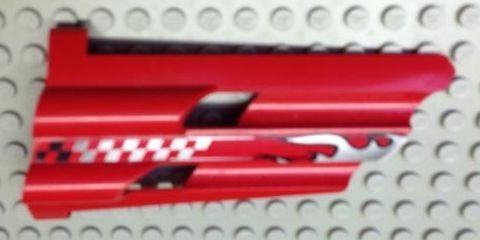 Technic, Panel Fairing # 3 Large Long, Large Holes, Side A with Silver Flames and Fading Checkered Pattern (Sticker) - Set 8279