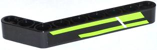 Technic, Liftarm, Modified Bent Thick 1 x 9 (7 - 3) with Lime Stripes Pattern (Sticker)