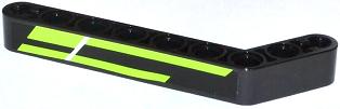 Technic, Liftarm, Modified Bent Thick 1 x 9 (7 - 3) with Lime Stripes Pattern (Sticker)