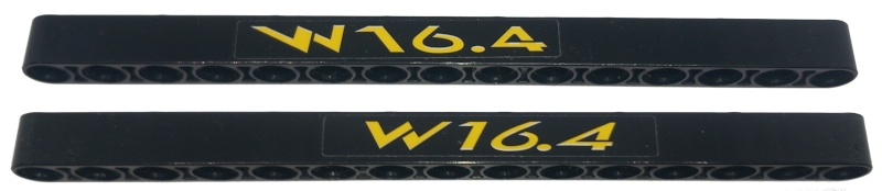 Technic, Liftarm Thick 1 x 15 with Yellow 'W16.4' Pattern on Both Sides (Stickers) - Set 42151