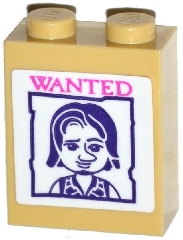 Brick 1 x 2 x 2 with Inside Stud Holder with Dark Pink 'WANTED' and Disney Princess Flynn Rider Poster Pattern (Sticker) - Set 41065