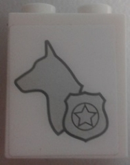 Brick 1 x 2 x 2 with Inside Stud Holder with Silver Dog Head Silhouette and Police Badge Pattern Model Left Side (Sticker) - Set 60048