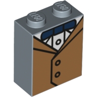 Brick 1 x 2 x 2 with Inside Stud Holder with Black Outlined Medium Nougat Jacket, White Shirt, and Bow Tie Pattern (BrickHeadz Newt Torso)